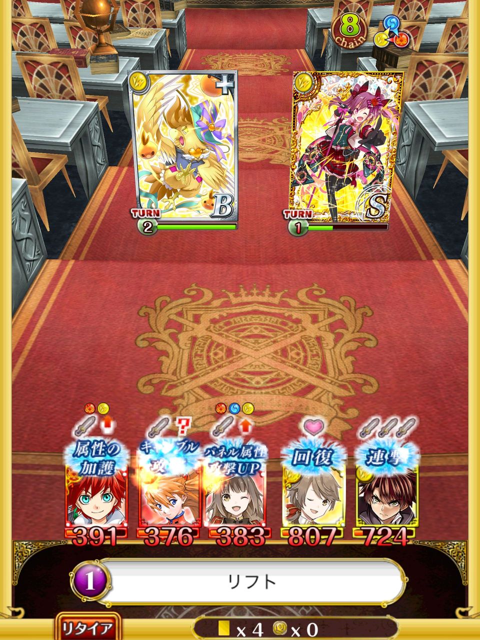 デッキ縛りは【1属性につき3体以下でクリア】【一体も倒れずにクリア】と若干厄介です。