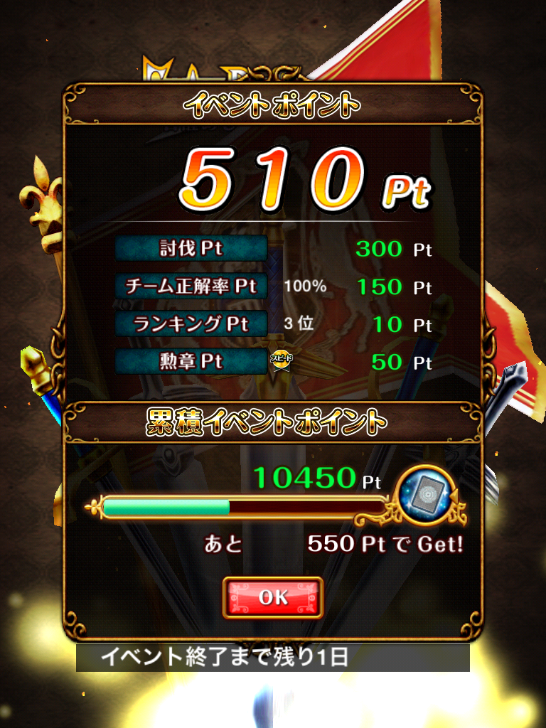 皆さんレイドイベントお疲れさまでした。兎に角しんどいイベントでしたね。素直に魔道杯の方が楽だったんじゃなかろうか。