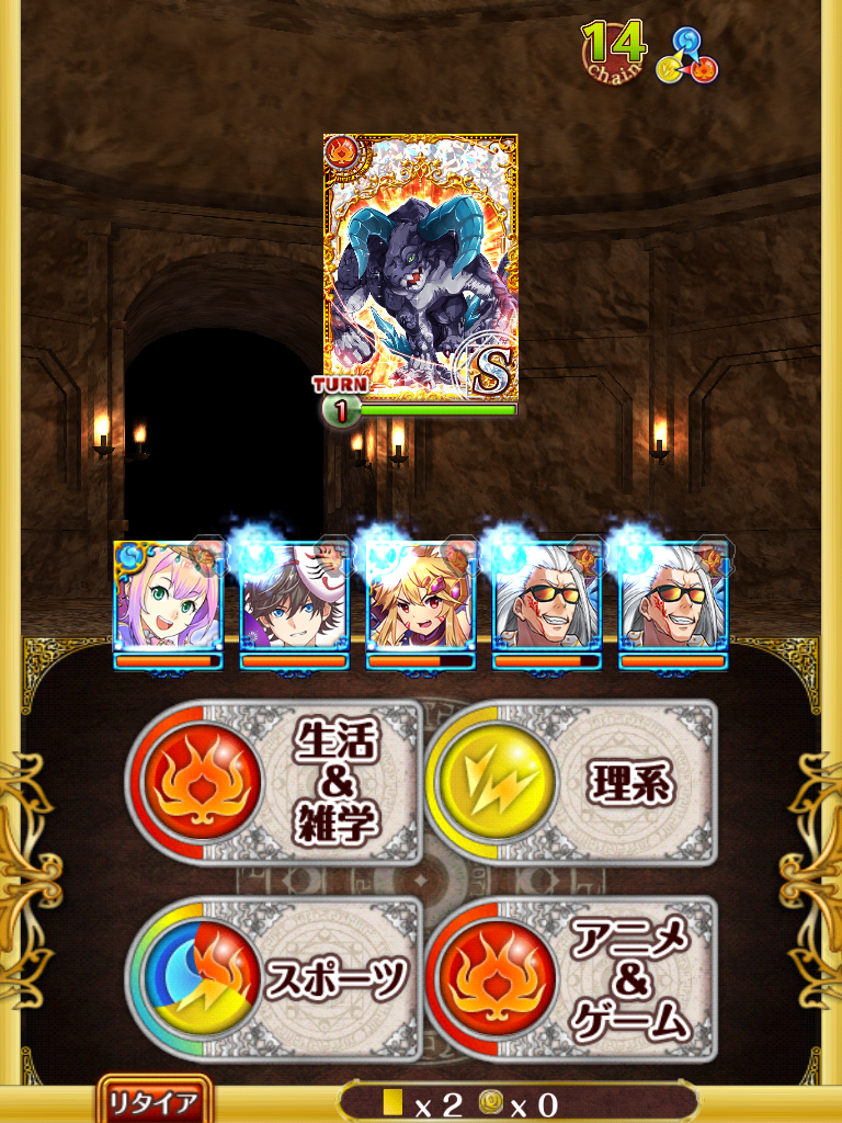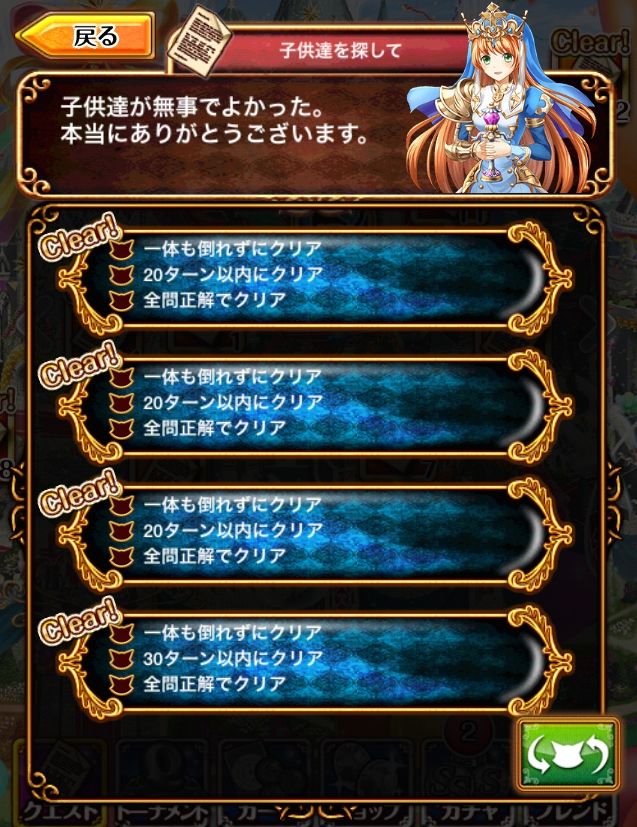本ステージのサブクエストは【一体も倒れずにクリア】【20 or 30ターン以内にクリア】【全問正解でクリア】と、速攻が有利になる設定となっています。