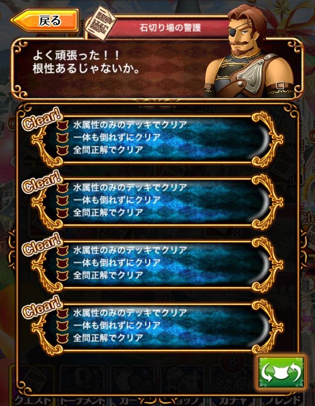 本ステージのサブクエストでデッキ構築に関わる条件は【水属性のみのデッキでクリア】のみです。更に本ステージはそもそも水属性デッキが推奨のため、実質デッキ縛りは無いと言ってよいでしょう。