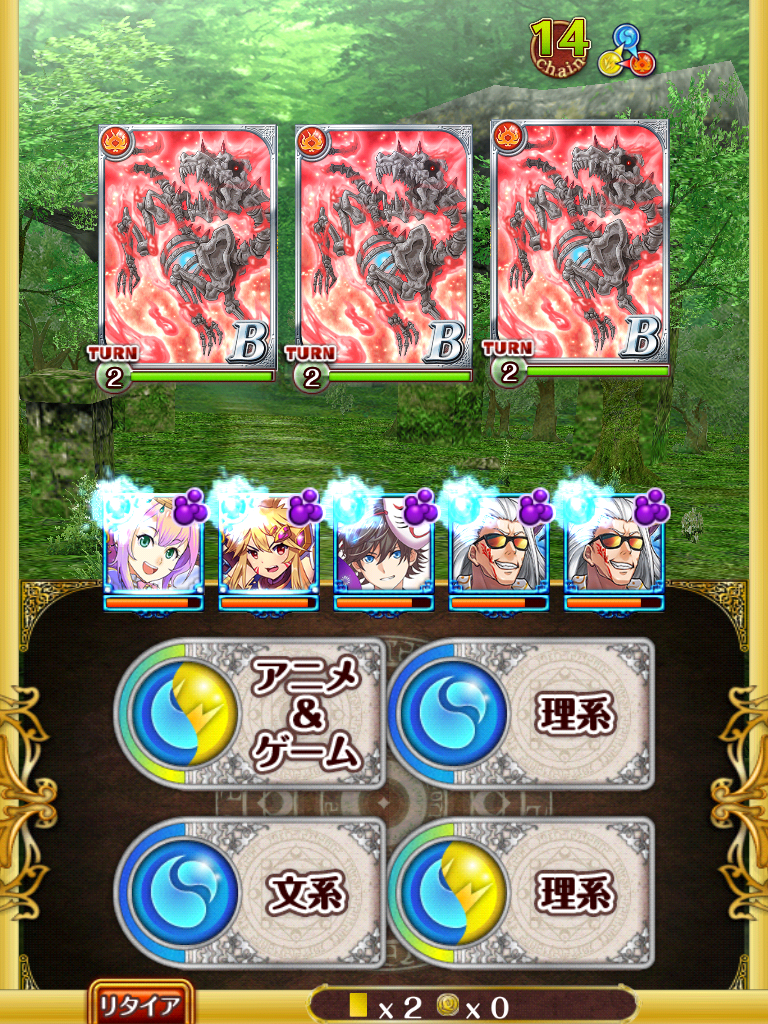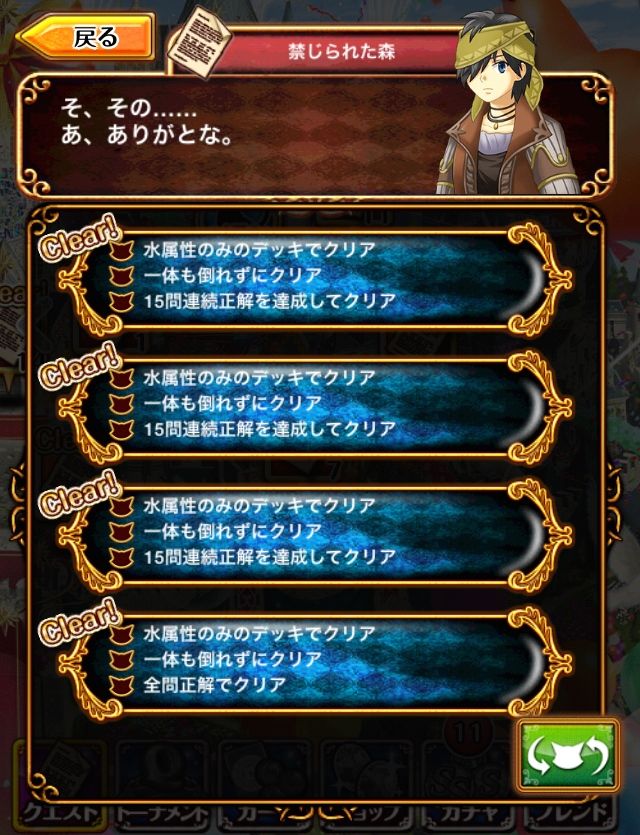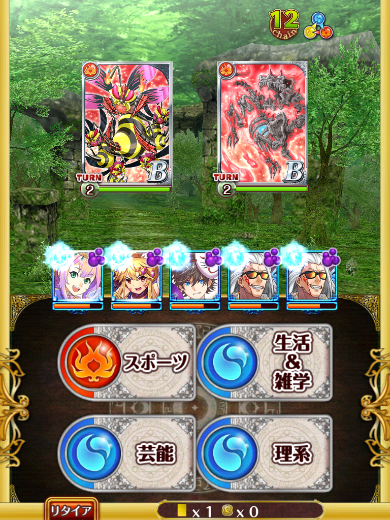 【15問連続正解 or 全問正解を達成してクリア】【一体も倒れずにクリア】の条件も設定されていますのでプレイングは要注意。普通に殴っているとうっかり15問正解を達成せずに終わってしまう事もあるので、コカトリスを残してターンを稼いでしまいましょう。