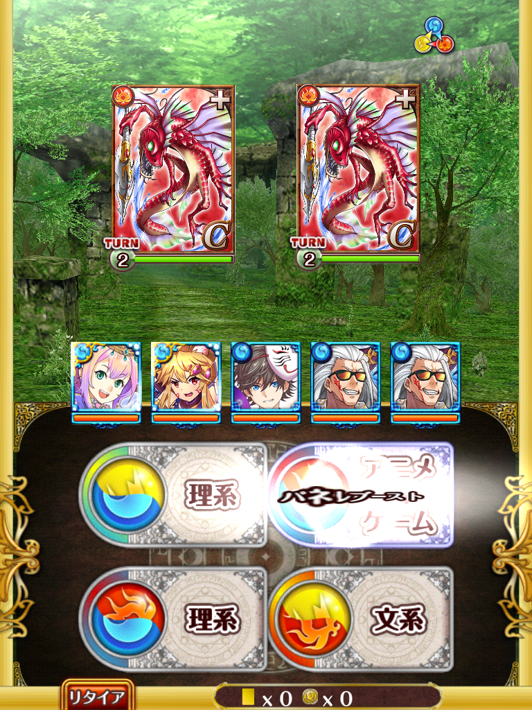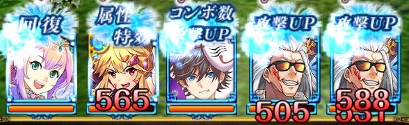 ボス戦に火属性の高耐久キャラが並びますので、水での高火力デッキがベターかと思います。