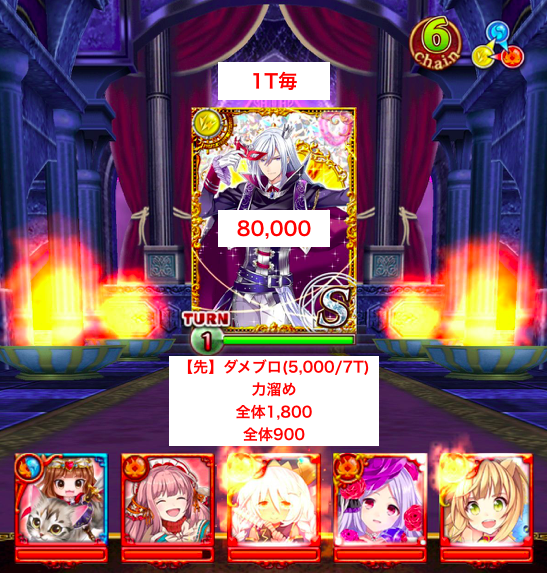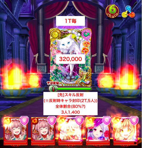 いきなりのキャラ封印から単体1,000ダメージで驚かされますが、その後の全体攻撃は300ダメージ程度と大したことはありません。