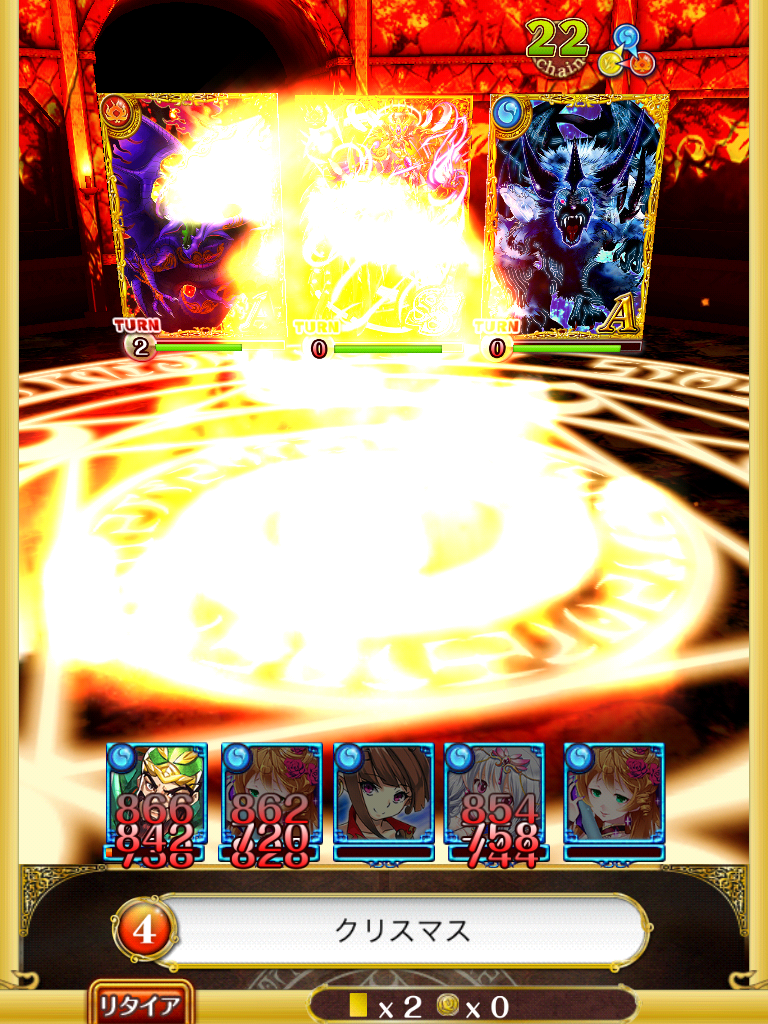 | 攻撃 | 3人×400ダメージ×3回 | 単体250ダメージ |